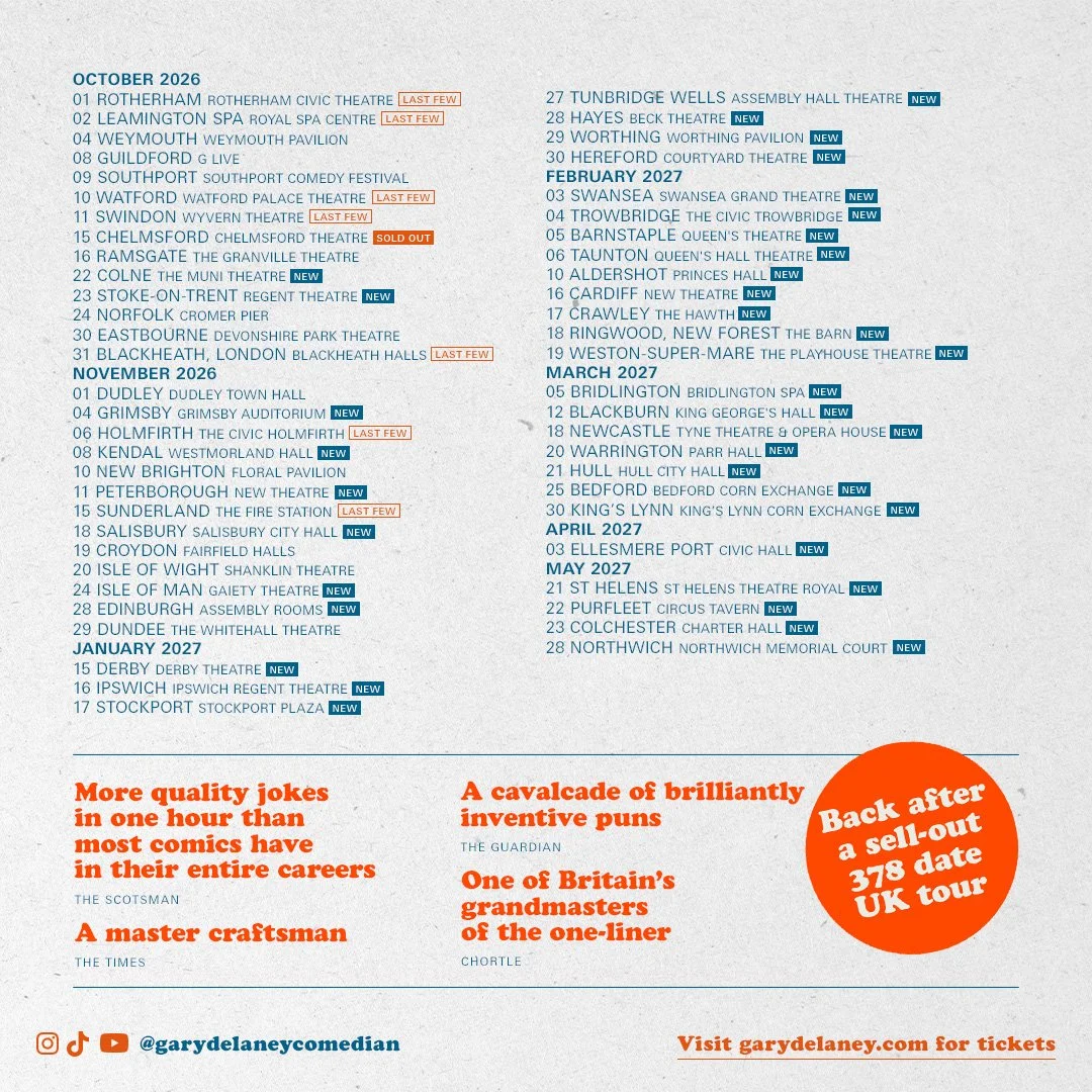 gary delaney: gary on laughing | NEW TOUR 2026 | 9th april - 29th november 2026